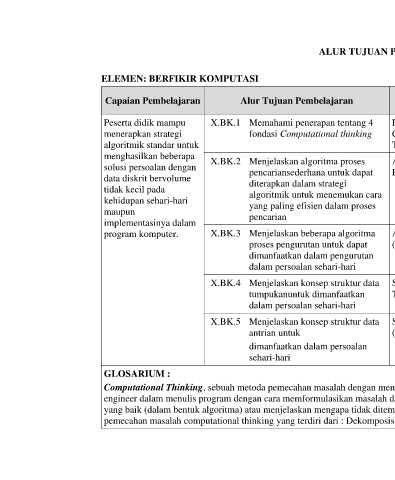 Peserta didik mampu X.BK.1 Memahami penerapan tentang 4 Fondasi 1. Bernalar kritis Computational 6 JP