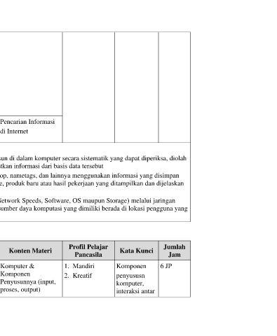 Capaian Pembelajaran Alur Tujuan Pembelajaran Konten Materi Kata Kunci