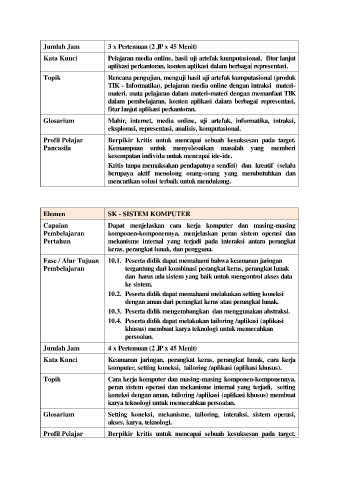 Jumlah Jam 3 x Pertemuan (2 JP x 45 Menit)