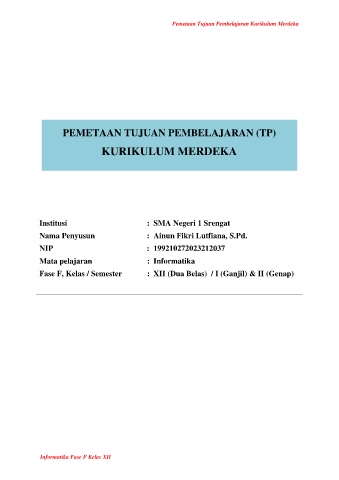 Fase F, Kelas / Semester : XII (Dua Belas) / I (Ganjil) & II (Genap)