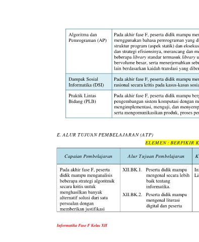 Pada akhir fase F, peserta XII.BK.1. Peserta didik mampu Informatika dan Beriman Informatika, 5 JP