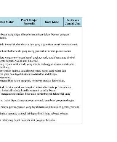 Capaian Pembelajaran Alur Tujuan Pembelajaran Konten Materi Kata Kunci