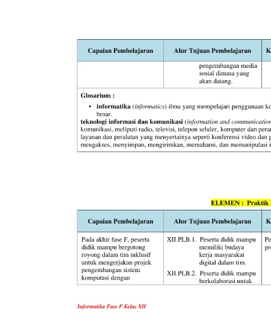 Capaian Pembelajaran Alur Tujuan Pembelajaran Konten Materi Kata Kunci