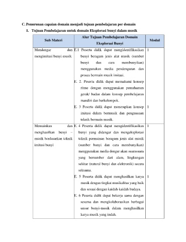 1. Tujuan Pembelajaran untuk domain Eksplorasi bunyi dalam musik