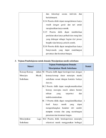 3. Tujuan Pembelajaran untuk domain Menciptakan musik sederhana