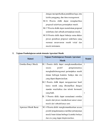 5. Tujuan Pembelajaran untuk domain Apresiasi Musik