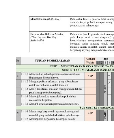 Berpikir dan Bekerja Artistik Pada akhir fase F, peserta didik mampu berkarya dan mengapresiasi berdasarkan perasaan, empati dan penilaian