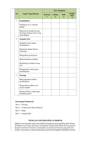 No Aspek Yang Diamati Kurang Cukup Baik Sangat