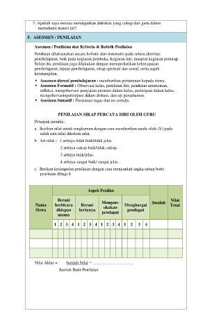 PENILAIAN SIKAP PERCAYA DIRI OLEH GURU