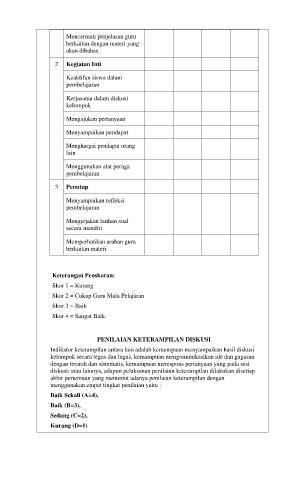 diskusi; atau lainnya, adapun pelaksanan penilaian keterampilan dilakukan disetiap