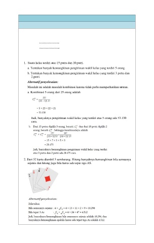 1. Suatu kelas terdiri atas 15 putra dan 10 putri.