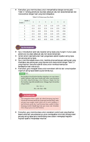 ❖ Guru menyebutkan salah satu kejadian saling lepas yang mungkin muncul pada