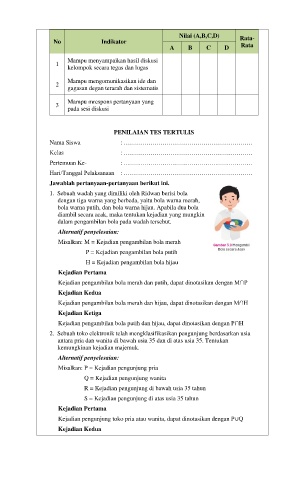 bola warna putih, dan bola warna hijau. Apabila dua bola