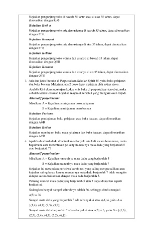 Kejadian pengunjung toko pria dan usianya di atas 35 tahun, dapat dinotasikan