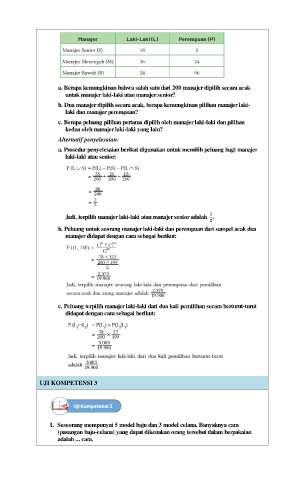 b. Dua manajer dipilih secara acak, berapa kemungkinan pilihan manajer laki-