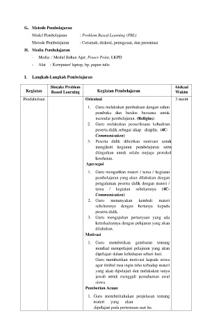 Kegiatan Based Learning Kegiatan Pembelajaran Waktu