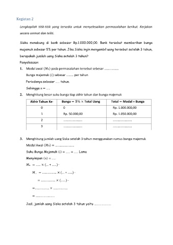Jadi, jumlah uang Siska setelah 3 tahun yaitu ……………………