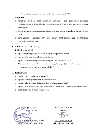 H. Relfeksi Peserta Didik dan Guru