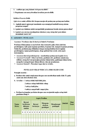 PENILAIAN SIKAP PERCAYA DIRI OLEH GURU