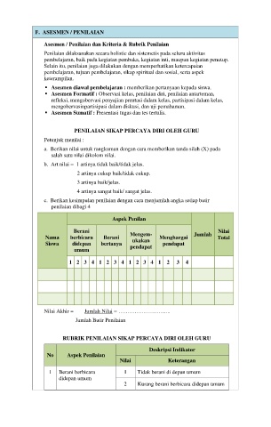 PENILAIAN SIKAP PERCAYA DIRI OLEH GURU