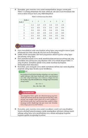 ❖ Guru menyebutkan salah satu kejadian saling lepas yang mungkin muncul pada