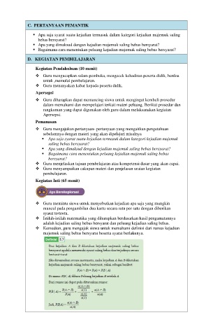 ❖  Kemudian, guru mengajak siswa untuk memahami definisi dari rumus kejadian