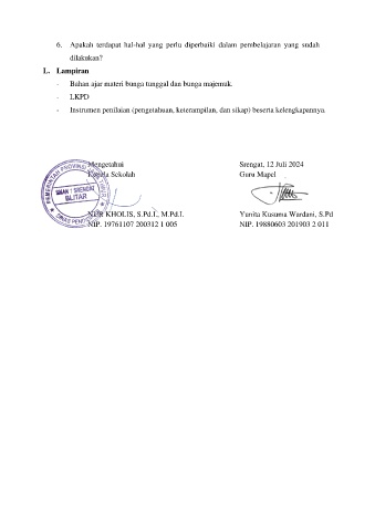 6. Apakah terdapat hal-hal yang perlu diperbaiki dalam pembelajaran yang sudah