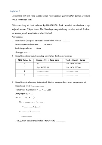 Jadi, jumlah uang Siska setelah 3 tahun yaitu ……………………