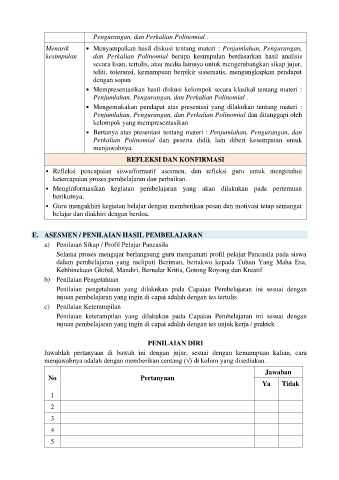 E. ASESMEN / PENILAIAN HASIL PEMBELAJARAN