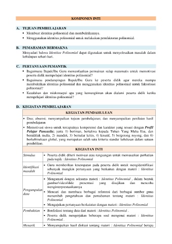 ▪ Mengamati dengan seksama materi : Identitas Polinomial , dalam bentuk