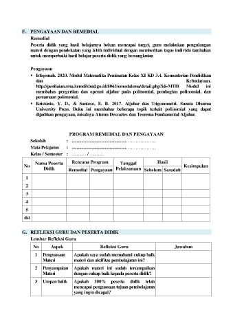 G. REFLEKSI GURU DAN PESERTA DIDIK