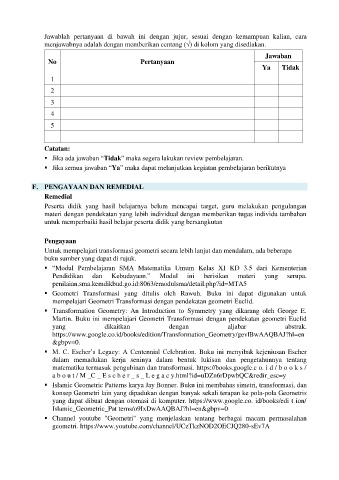 ▪ Jika ada jawaban “Tidak” maka segera lakukan review pembelajaran.