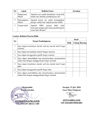 No Aspek Refleksi Guru Jawaban