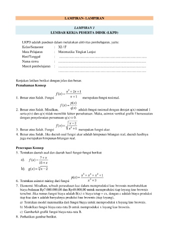 1. Benar atau Salah. Fungsi merupakan fungsi rasional.