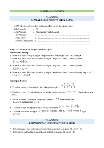 2. Benar atau salah. Misalkan diberikan bilangan kompleks z1 dan z2, maka diperoleh