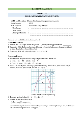 2. Benar atau Salah. Polinomial pertama dikurangi polinomial kedua sama dengan negatif dari