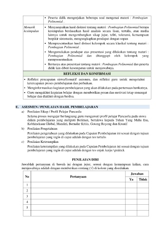 E. ASESMEN / PENILAIAN HASIL PEMBELAJARAN
