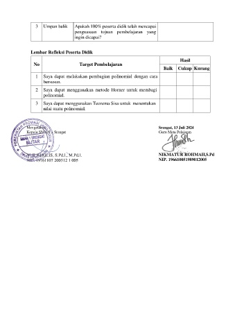 3 Umpan balik Apakah 100% peserta didik telah mencapai
