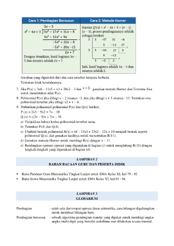 7. Jika P(x) = 3x6 – 11x5 + x3 + 20x2 – 3 dan gunakan metode Horner dan Teorema Sisa