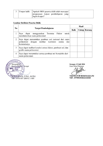 3 Umpan balik Apakah 100% peserta didik telah mencapai