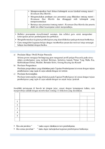 Refleksi pencapaian siswa/formatif asesmen, dan refleksi guru untuk mengetahui