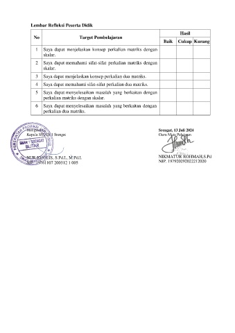 Lembar Refleksi Peserta Didik