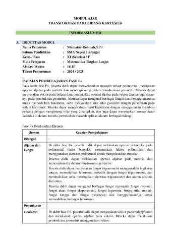 Geometri Di akhir fase F+, peserta didik dapat menyatakan vektor pada bidang datar,