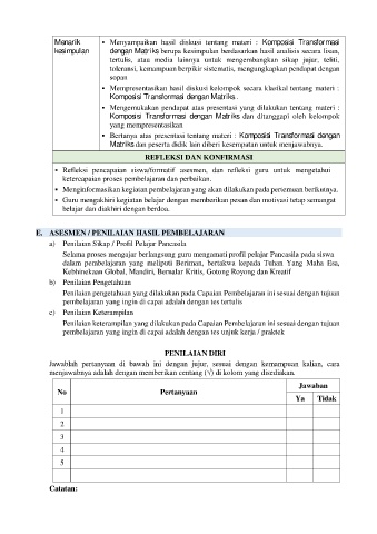 Refleksi pencapaian siswa/formatif asesmen, dan refleksi guru untuk mengetahui