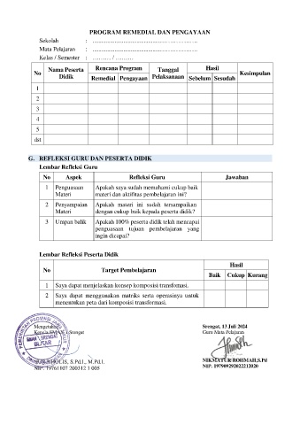 G. REFLEKSI GURU DAN PESERTA DIDIK