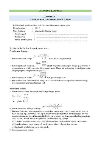 1. Benar atau Salah. Fungsi merupakan fungsi rasional.
