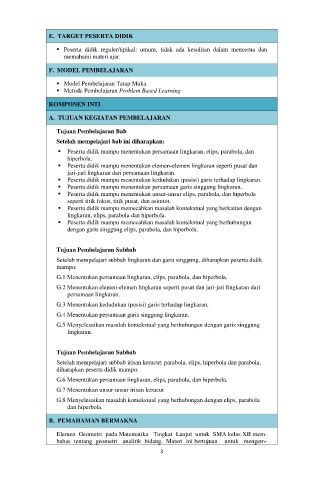 Peserta didik mampu menentukan persamaan lingkaran, elips, parabola, dan