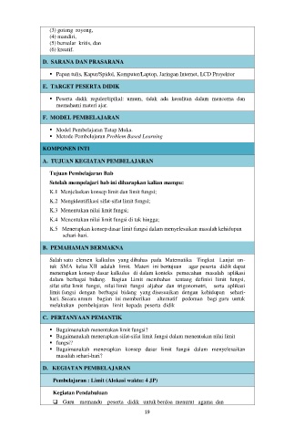 Pembelajaran : Limit (Alokasi waktu: 4 JP)