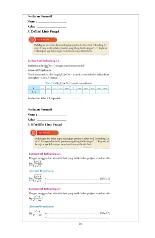 Penilaian Formatif Nama : ___________________ Kelas : ___________________ A. Definisi Limit Fungsi Penilaian Formatif Nama : ___________________ Kelas : ___________________ B. Sifat-Sifat Limit Fungsi 24