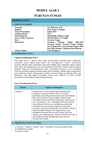 Kalkulus Di akhir fase F+, peserta didik dapat memahami laju